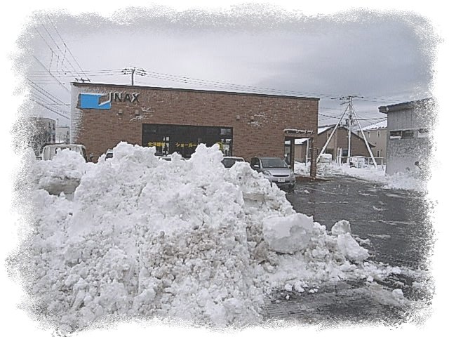 “INAX新商品&リフォームフェア”も無事に終わり「ホット」していた中、日曜日に降っていた雨が夕刻ともに霙から雪となり.....ご覧のありさま......この時期さすがにほとんどの人が車のタイヤをスタットレスから夏タイヤにはき替えていたため交通は混乱、雪道には慣れてるとは言え夏タイヤでの走行は危険と隣り合わせでした。当社社員も全員、季節はずれの雪に悪戦苦闘しながらも定刻までに遅れることなく出勤、一息つく間もなく除雪作業におわれました。トホホ.......